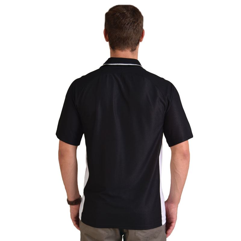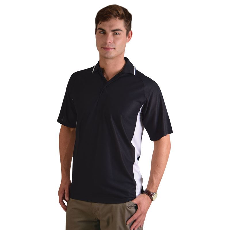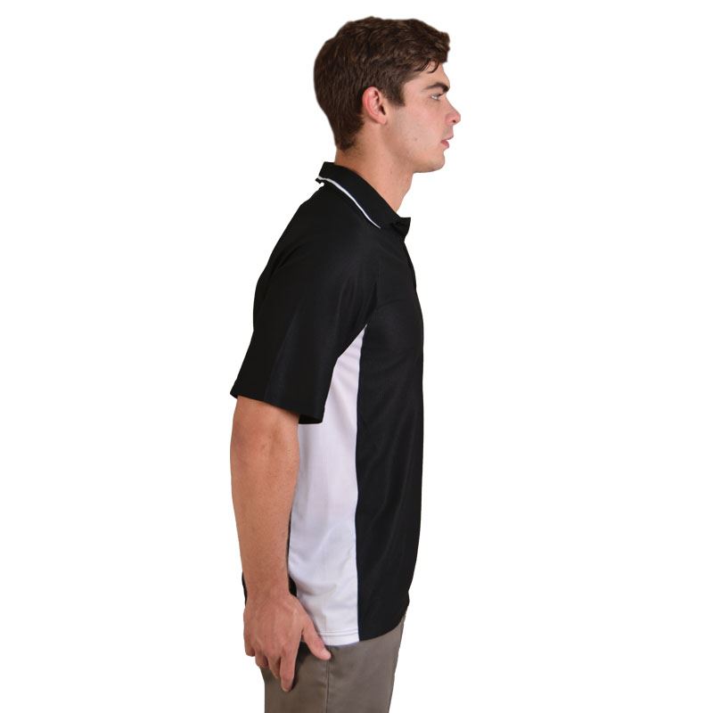 Made from polymicro waffle fabric, this moisture wicking polo dries quickly through evaporation.